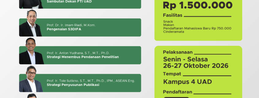 (S3 DIFA News) Program Studi Doktor Informatika Universitas Ahmad Dahlan (S3DIFA UAD) memberikan sinyal positif bagi calon pelamar dan mahasiswa baru dengan mengumumkan jadwal Coming Soon kegiatan Pre-Doctoral Course Batch 6. Program yang telah menjadi agenda unggulan tahunan ini dirancang untuk membekali calon doktor dengan kematangan strategi riset dan publikasi internasional sebelum resmi memulai masa perkuliahan.